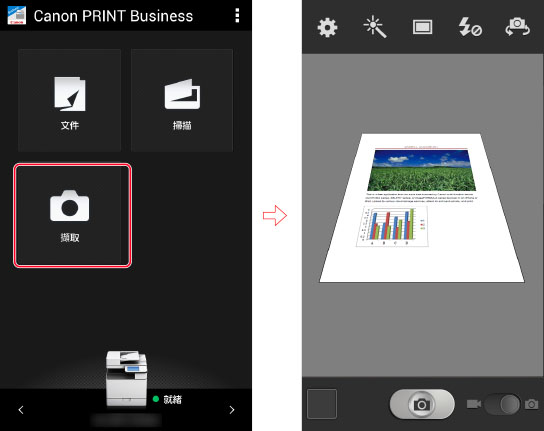 使用相機擷取影像並在應用程式中以 PDF 格式讀取。