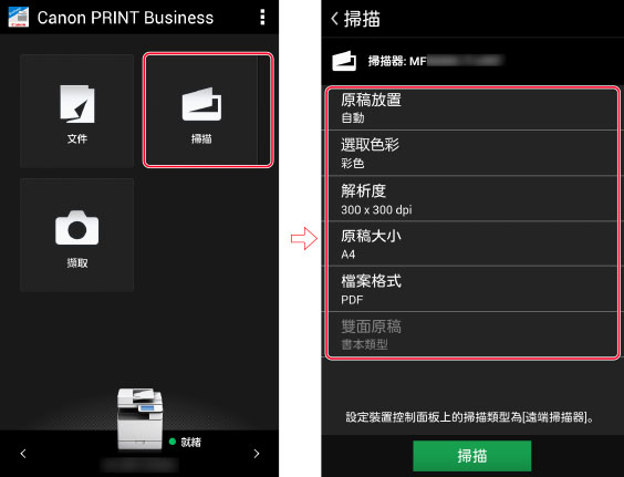 在行動裝置上接收透過多功能裝置掃描的資料。