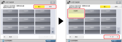 7.從[個人]和[共用]選擇註冊位置 → 選擇要註冊的按鈕 → 按下[下一步]。